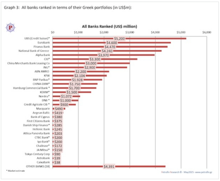 船舶金融咨詢公司Petrofin Research 在其年度報告中表示,希臘船舶融資的Petrofin指數(shù)從2001年的100上升至2008年的443,從2023年的308上升至2024年的324,這是自2017年以來的最高指數(shù)。值得注意的是,Petrofin指數(shù)僅與銀行相關(guān)金融有關(guān),不包括通過售后回租(SLB)和其他形式的貸款進(jìn)行的融資。